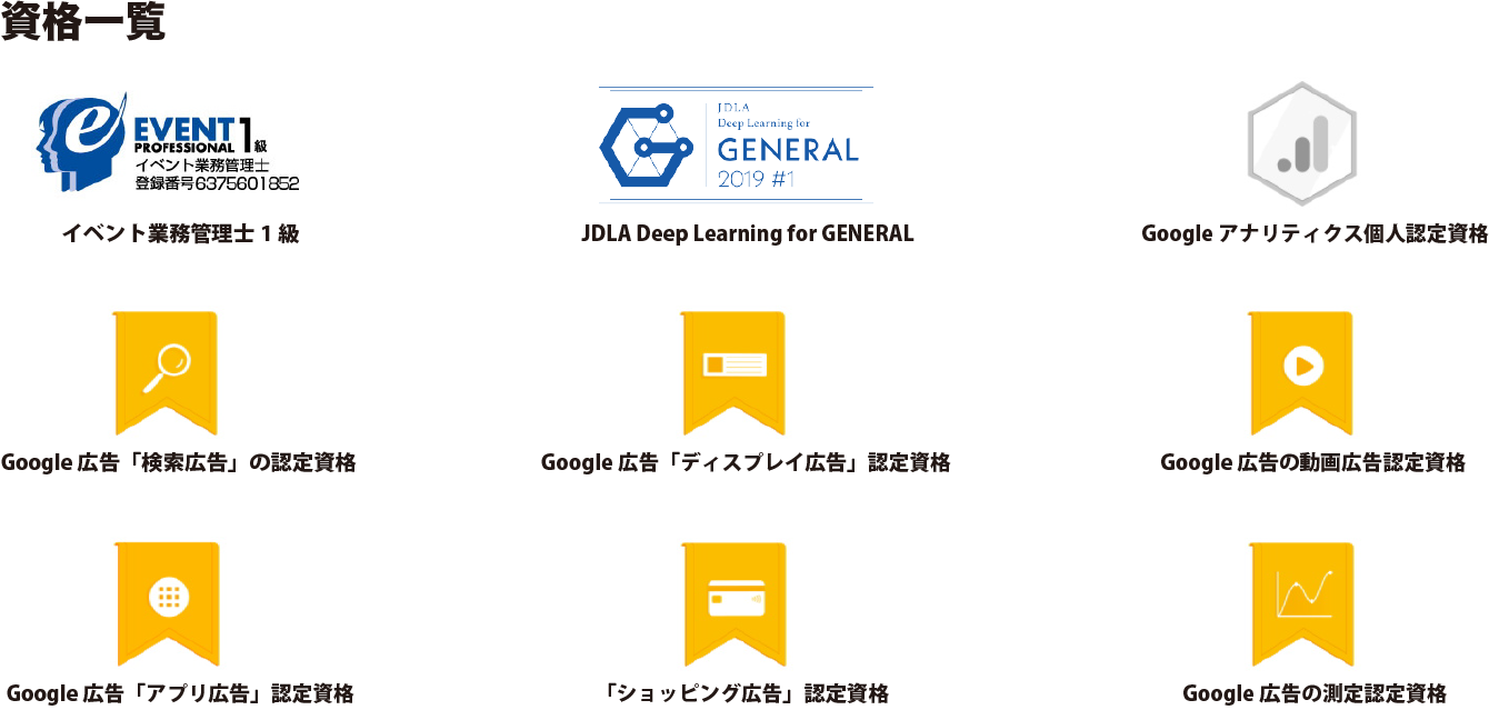 さまざまな課題に対し、イベント業務管理士1級・JDLA Deep Learning for GENERAL・WEB関連資格者などが幅広くご相談を承ります。